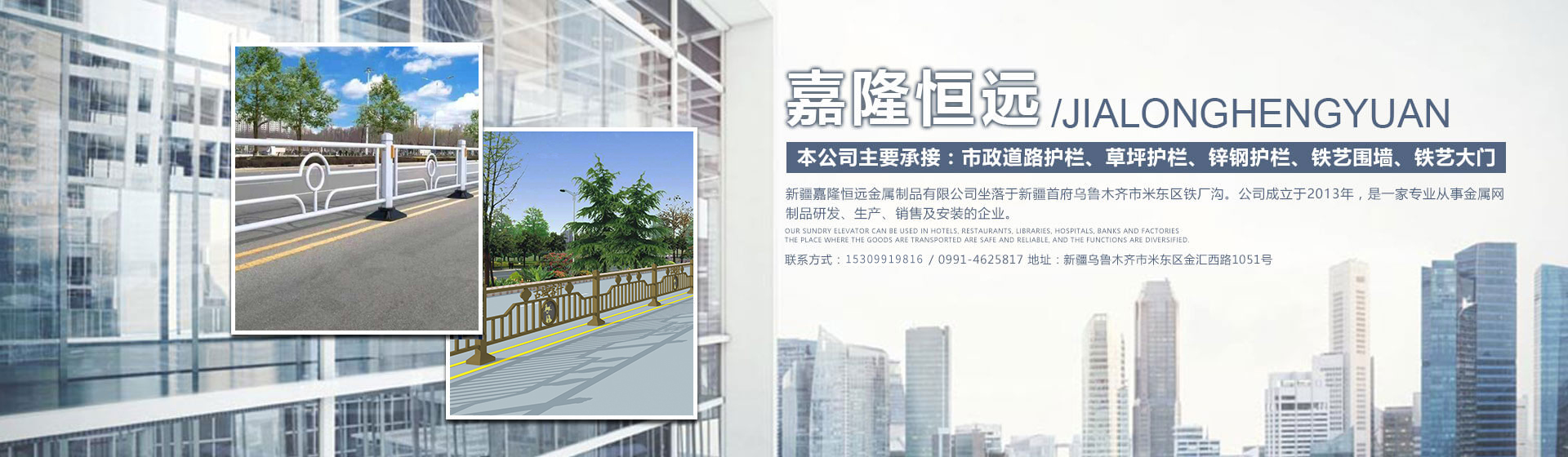 新疆嘉隆恒遠金屬制品有限公司坐落于新疆首府烏魯木齊市米東區鐵廠溝。公司成立于2013年,是一家專業從事金屬網制品研發、生產、銷售及安裝的企業。 本公司主要承接 市政道路護欄、草坪護欄、鋅鋼護欄、鐵藝圍墻、鐵藝大門。 公司購進一批新的生產設備,生產能力、廠區環境得到大步提升、我公司將以全新的面貌、以更優質的產品、更高的效力、為你提供更全面的服務。 公司承諾將以齊全的品種、優質的產品、良好的服務、超值的價位竭誠為廣大新老客戶服務。 隨著西部大開發的加快,我公司將依托新疆有利的資源,打造出新疆生產規模大、品種全的生產基地,迎接更美好、更輝煌的明天。 歡迎來電咨詢,實地考察,一次合作,終身是友。